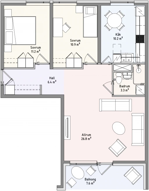 Balkong 7,6 ㎡. Vatten och bruksel tillkommer enligt egen förbrukning.