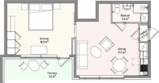 Egen terrass 7,6 ㎡. Vatten och bruksel tillkommer enligt egen förbrukning.