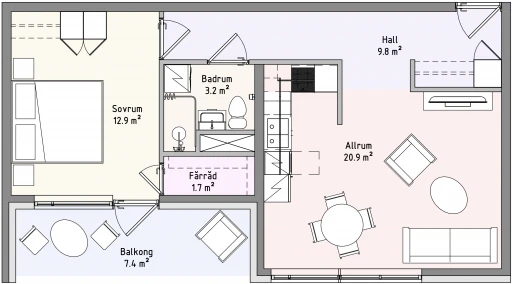 Balkong 7,4 ㎡. Vatten och bruksel tillkommer enligt egen förbrukning.