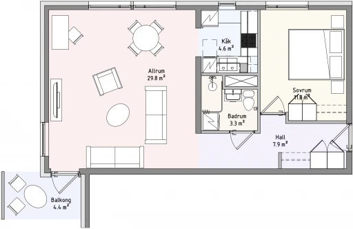 Balkong 4,4 ㎡. Vatten och bruksel tillkommer enligt egen förbrukning.